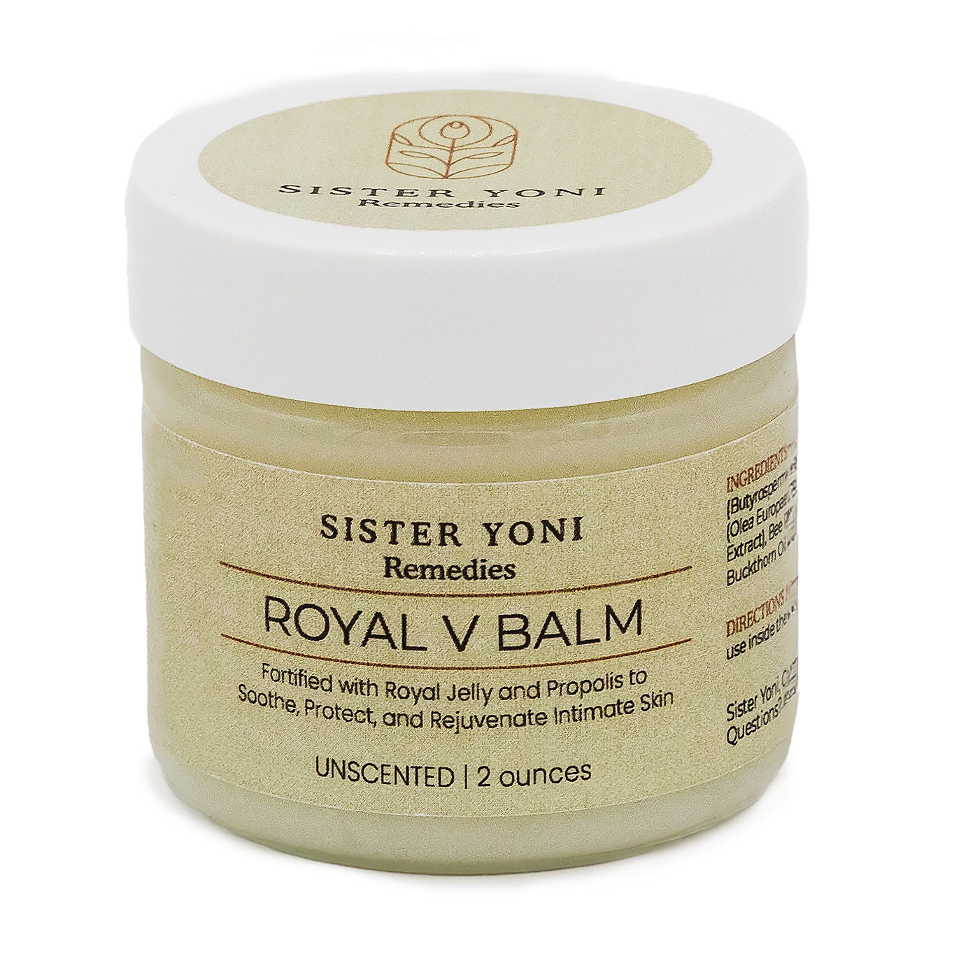 Honoring the queen within you - Sister Yoni Royal V Balm is designed to rejuvenate and protect your most delicate areas. This gentle, hormone-free cream nourishes, hydrates, and revitalizes. Crafted with nature’s most powerful ingredients to promote skin elasticity and revitalization.
