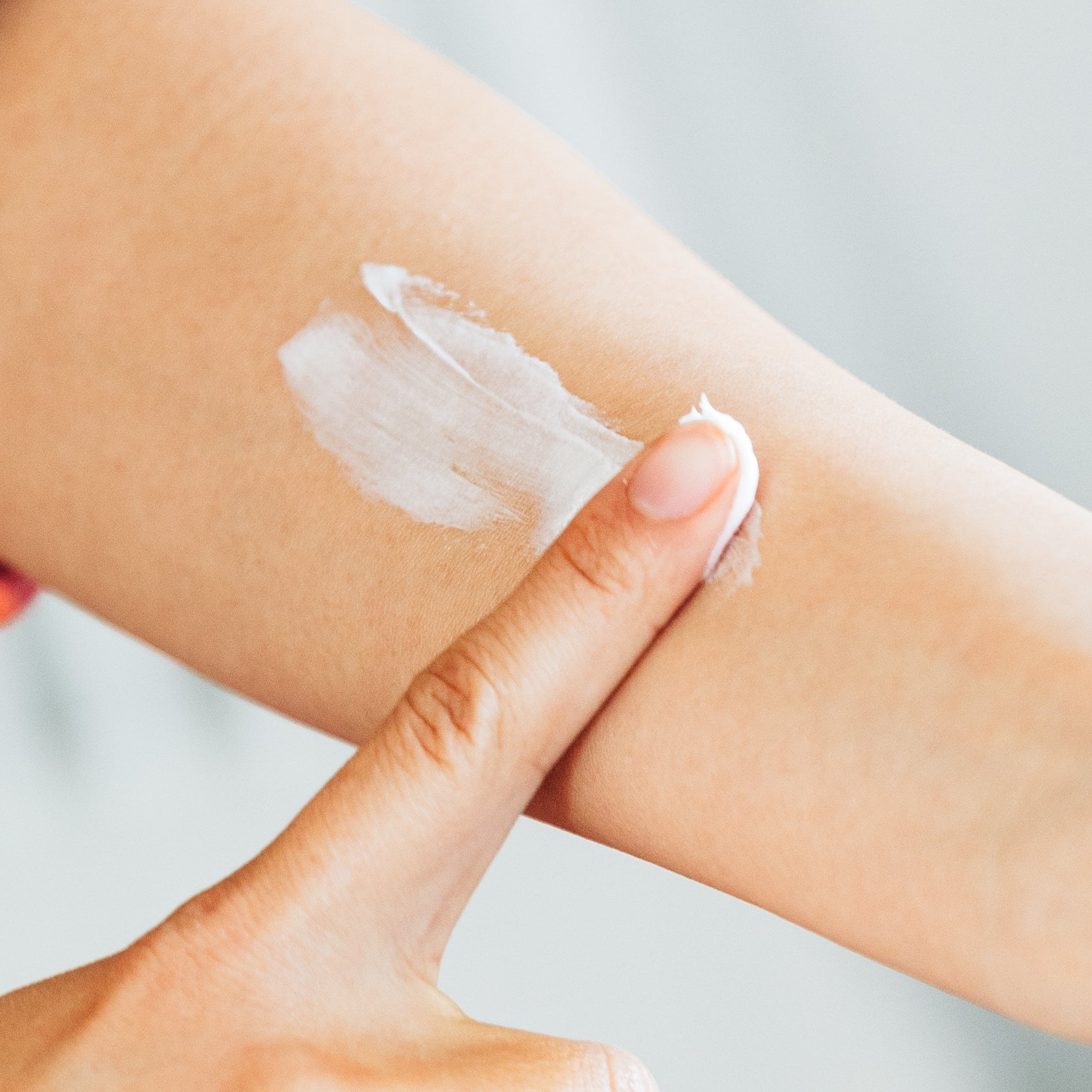 It’s simple: Apply a pea-sized amount to your wrists, inner arms, thighs, belly button, or the bottoms of your feet.