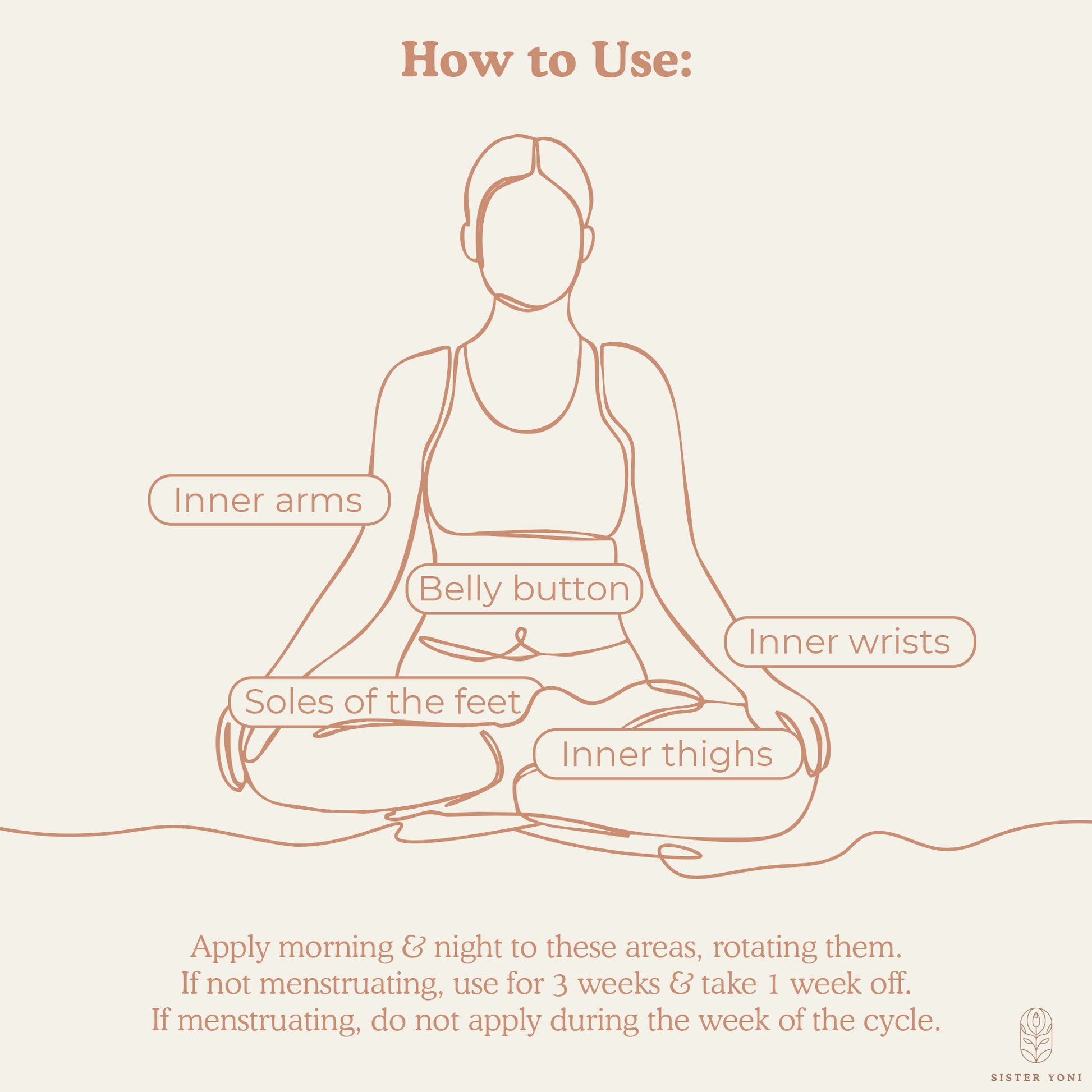 - If not menstruating: Use daily for 3 weeks, rotating application areas.